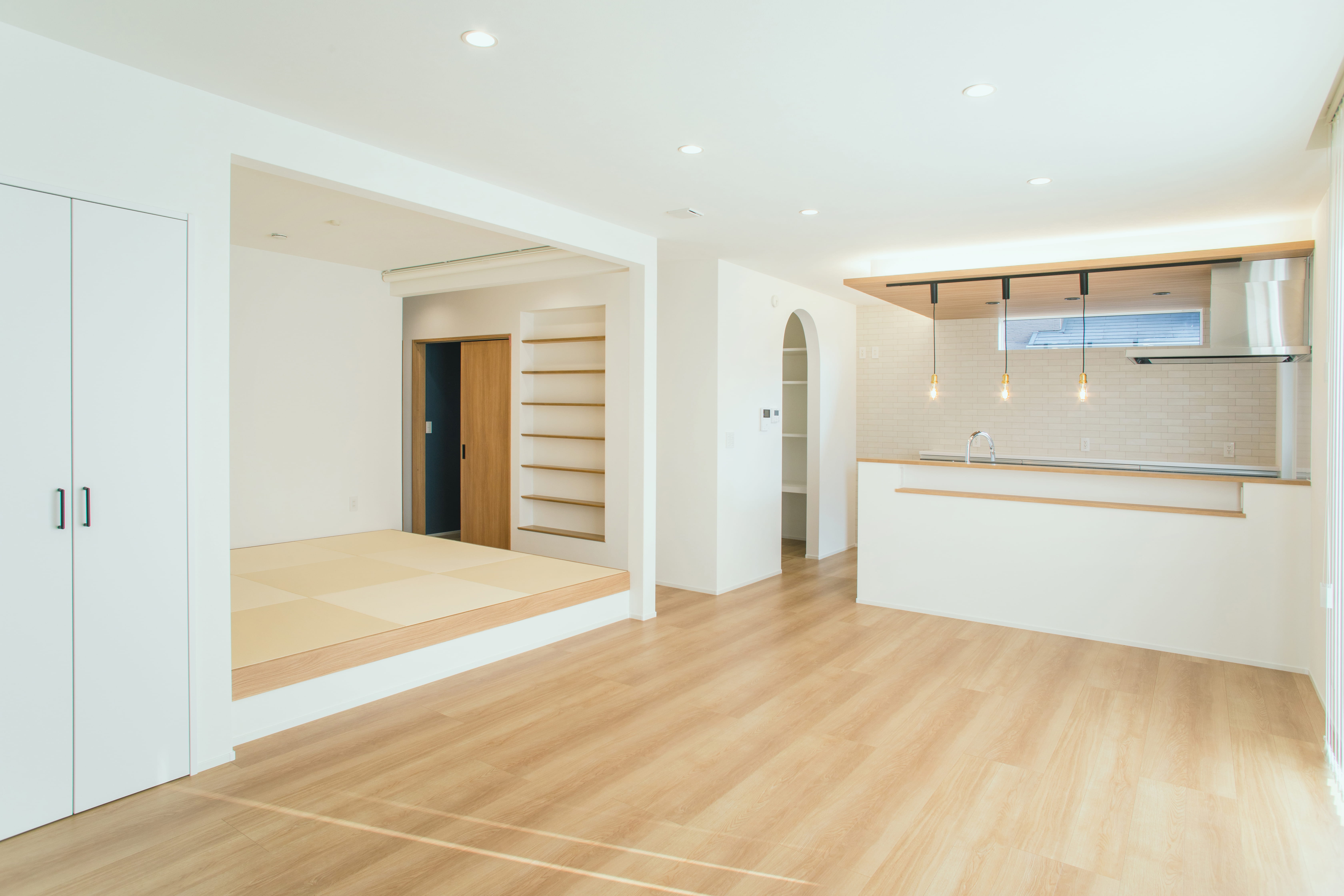 オープン棚やニッチを活用して、雑貨や本を飾るように収納をし、見せる収納でお気に入りの空間を楽しむことができます。