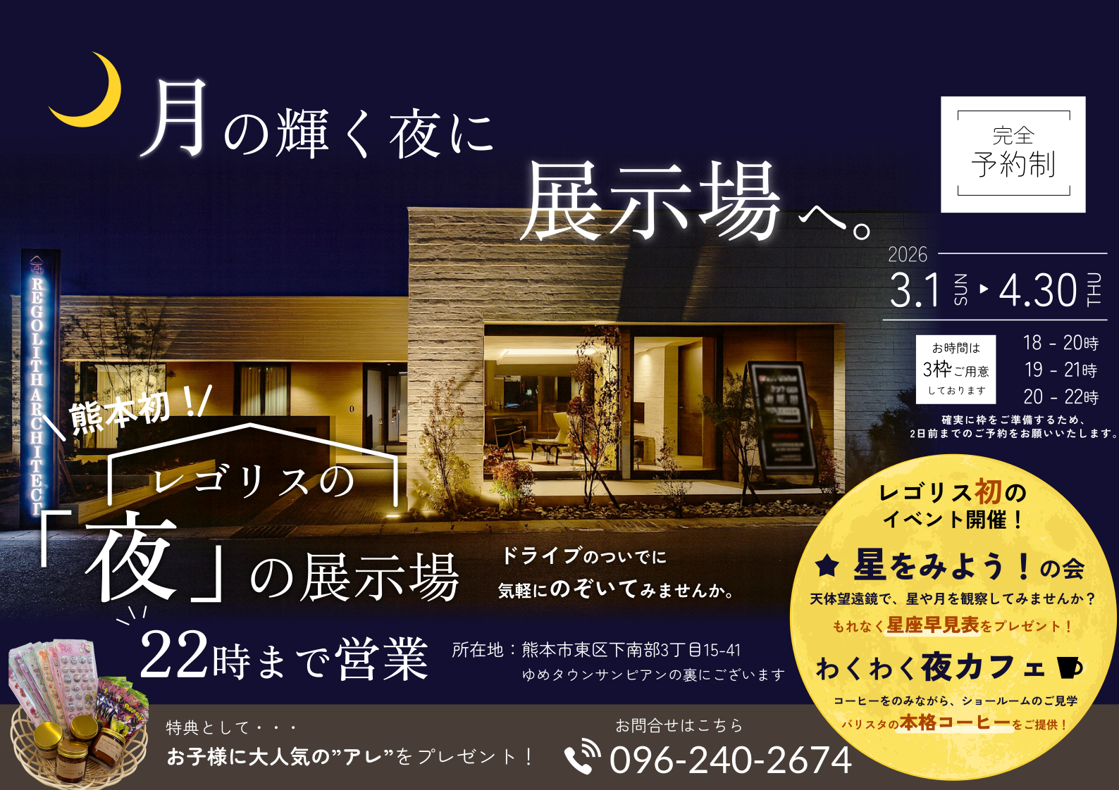 【熊本初】レゴリスの「夜」の展示場 ー月の輝く夜に展示場へー