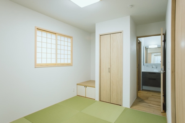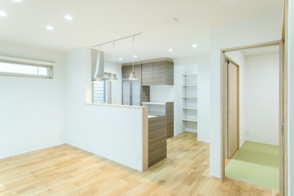リビング横の和室は、お子様との遊び場、くつろぎスペース、来客時の応接室としても活用できそうですね。