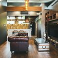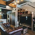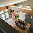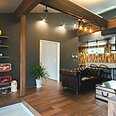 飾り梁で奥行き感を演出した天井。インダストリアルな雰囲気に包まれた、施主様こだわりのリビングです。