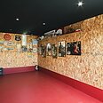 ガレージはOSBボードを使い、趣味のアイテムを飾れる“見せる空間”に。