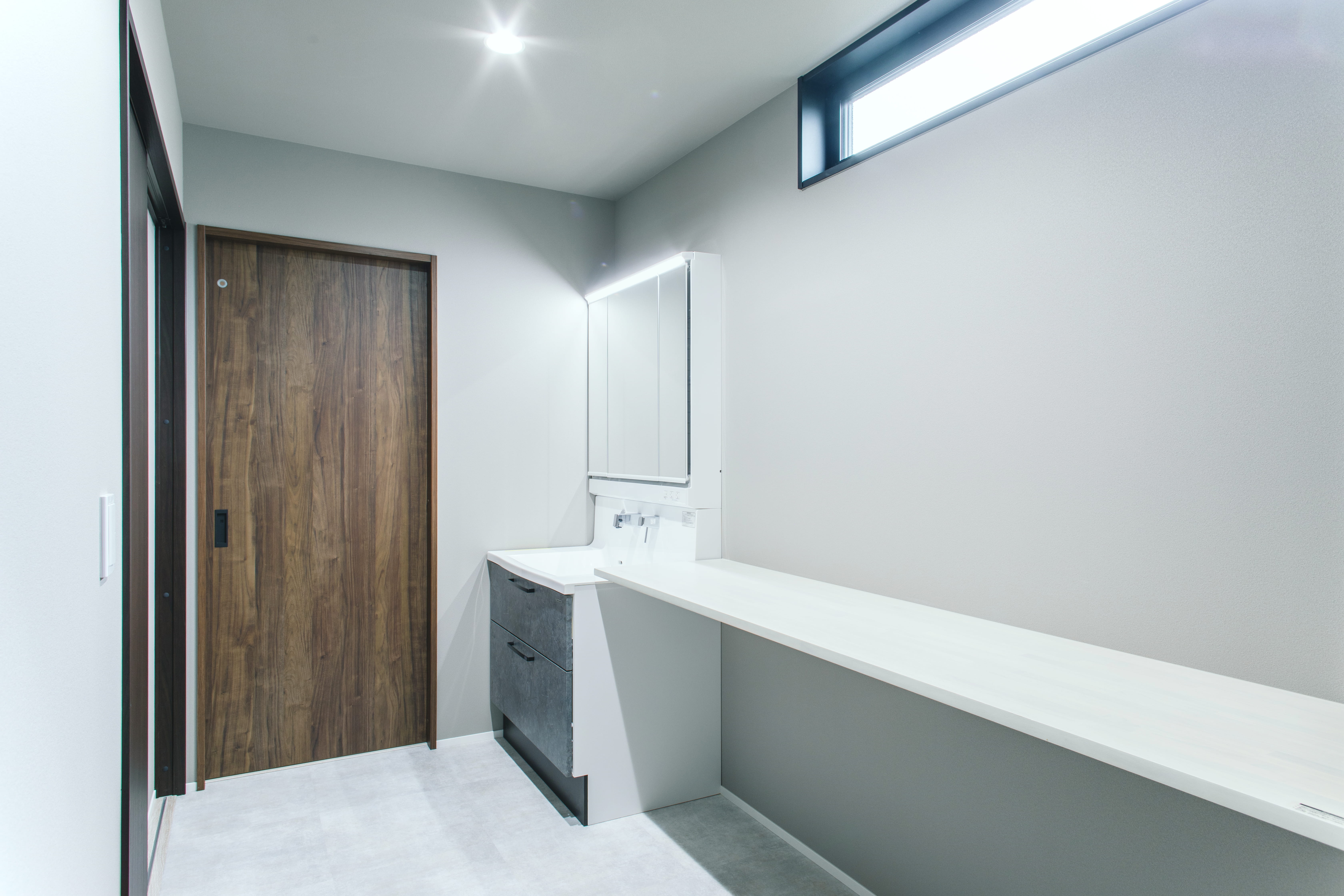広めのカウンターを設置し、お洗濯のしやすさが考えられています。上部に窓を設置し明るい印象。