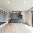 グレーに木目を合わせることで、温かみも加わり、家族にとって落ち着く、くつろぎのリビングとなっています。