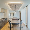 アイランドキッチンに横づけのダイニングで家事動線の短縮が叶います。折り下げ天井からの間接照明も雰囲気をぐっと引き立てています。