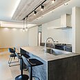 ダークグレーの石目調アイランドキッチンが映える住まい。