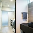 タイル張りの水回りは、高級感だけでなく、お掃除もしやすく、家事楽も叶えています。黒で統一した水回りは、ワンランク上の空間に仕上げています。