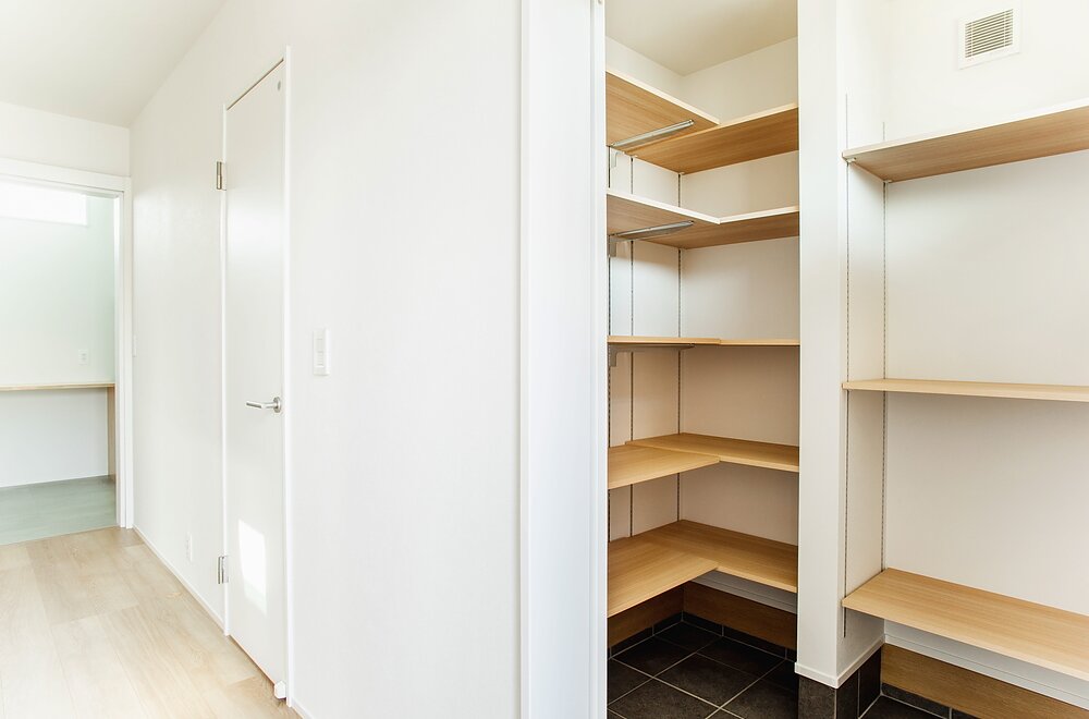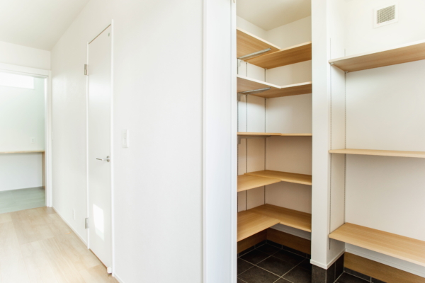 造作棚で収納力を確保したシューズクローク。収納スペースを確保することで、玄関を綺麗に保つことができます。