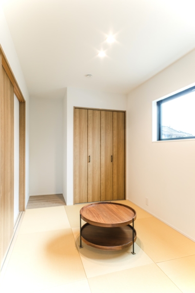明るく落ち着く和室は、リビング横に設計。家族団らんの場や来客時のおもてなしにも。
