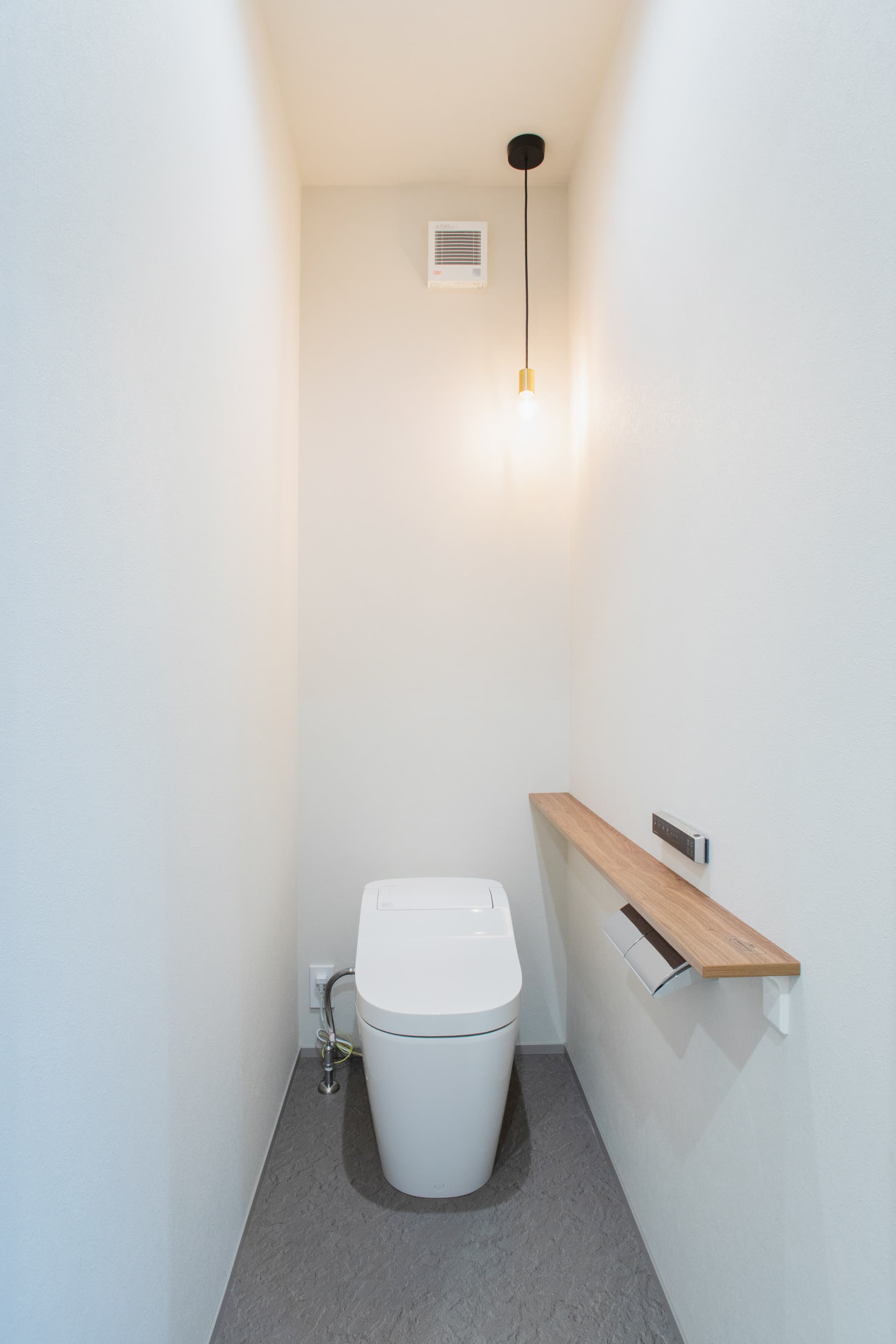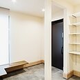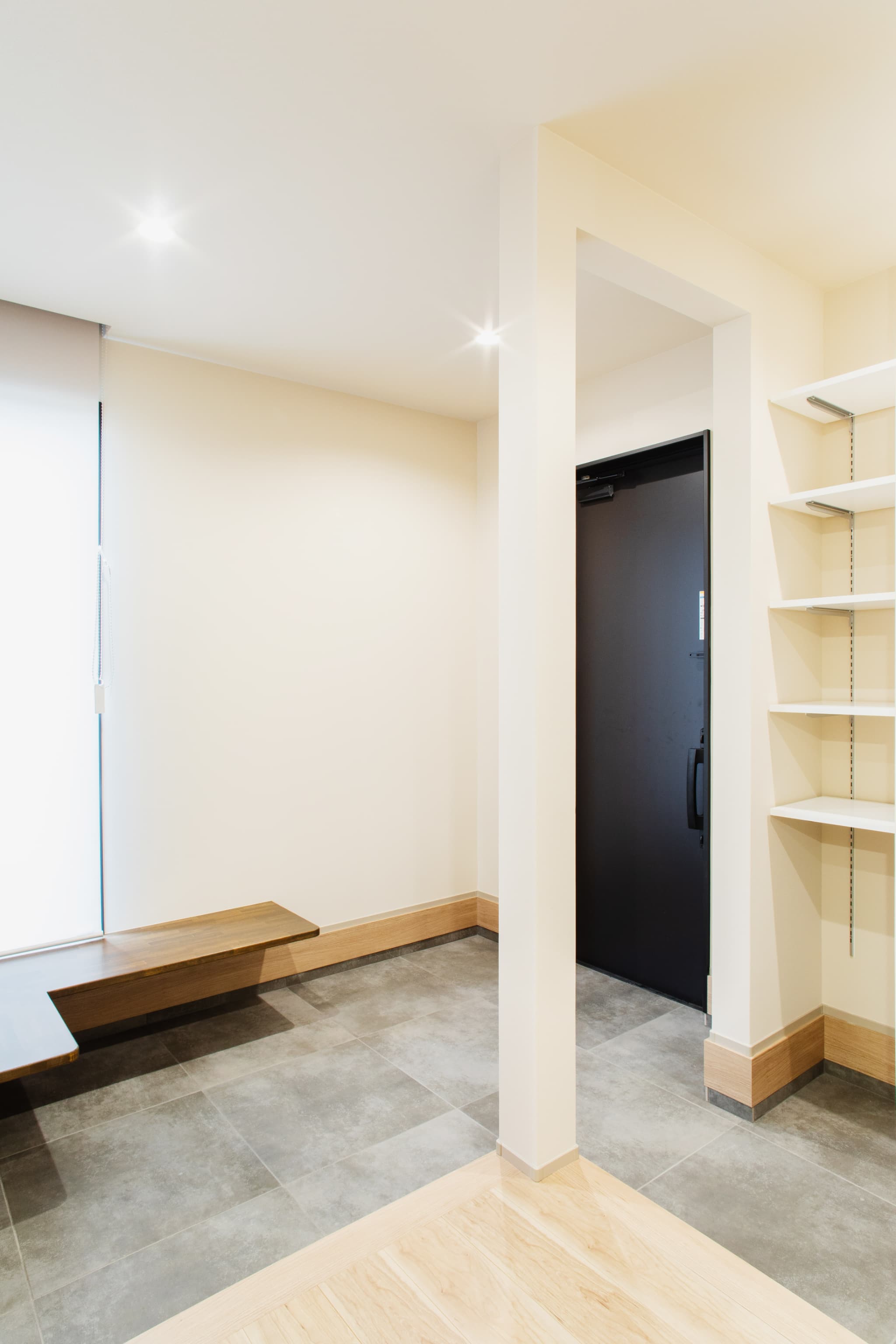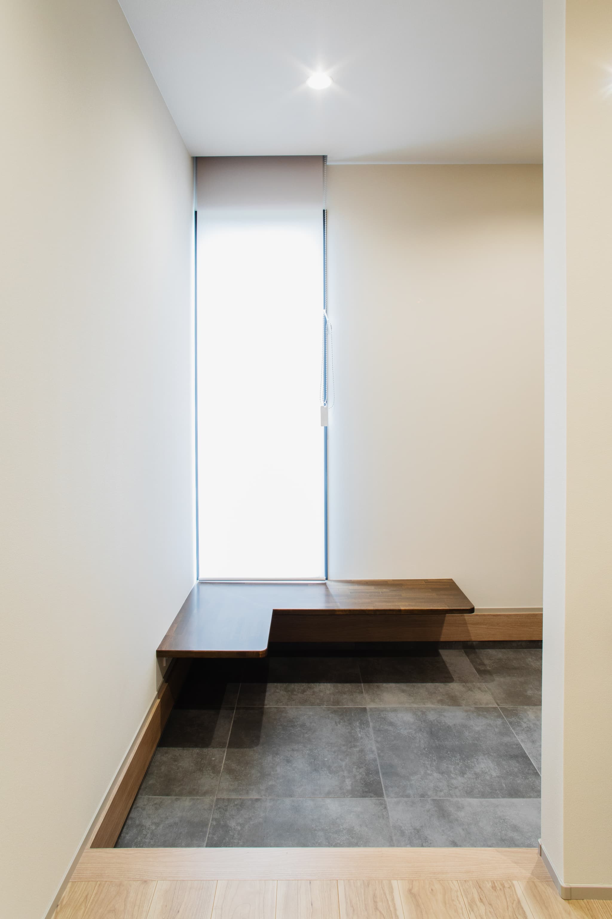 玄関にはちょい置き、ちょい座りに便利なベンチまであり、遊び心満載な住まいです。