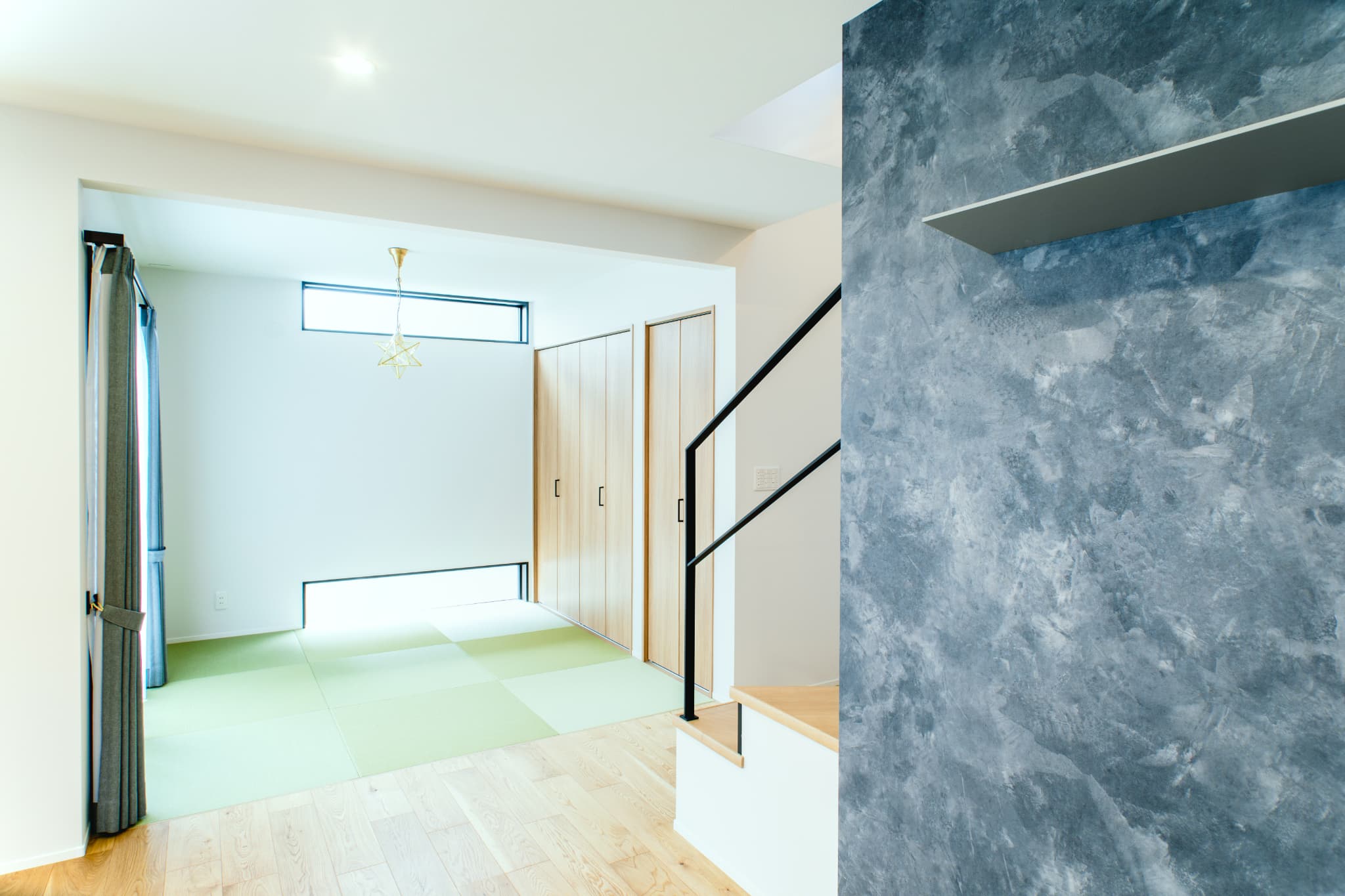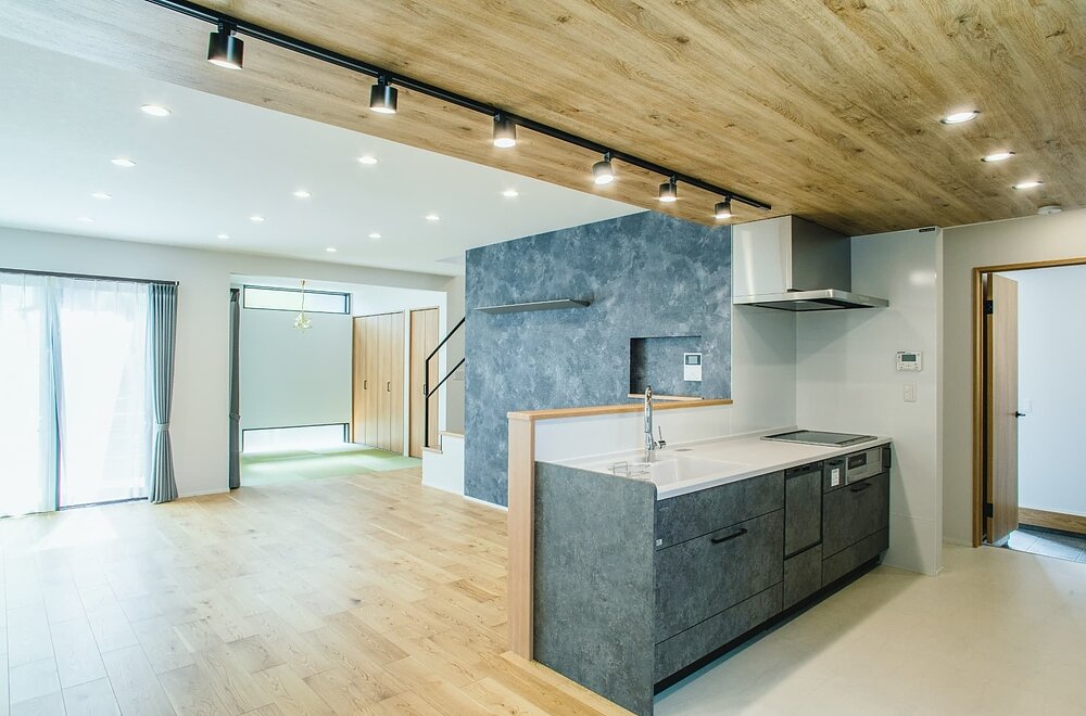 家族と過ごすリビングには和室を設け、2階から階段を降りるとリビングに出る設計のため、家族との会話、家族と過ごす時間が、より特別なものに。
