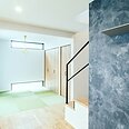 家全体に、木目と石目調をふんだんに使った邸宅。